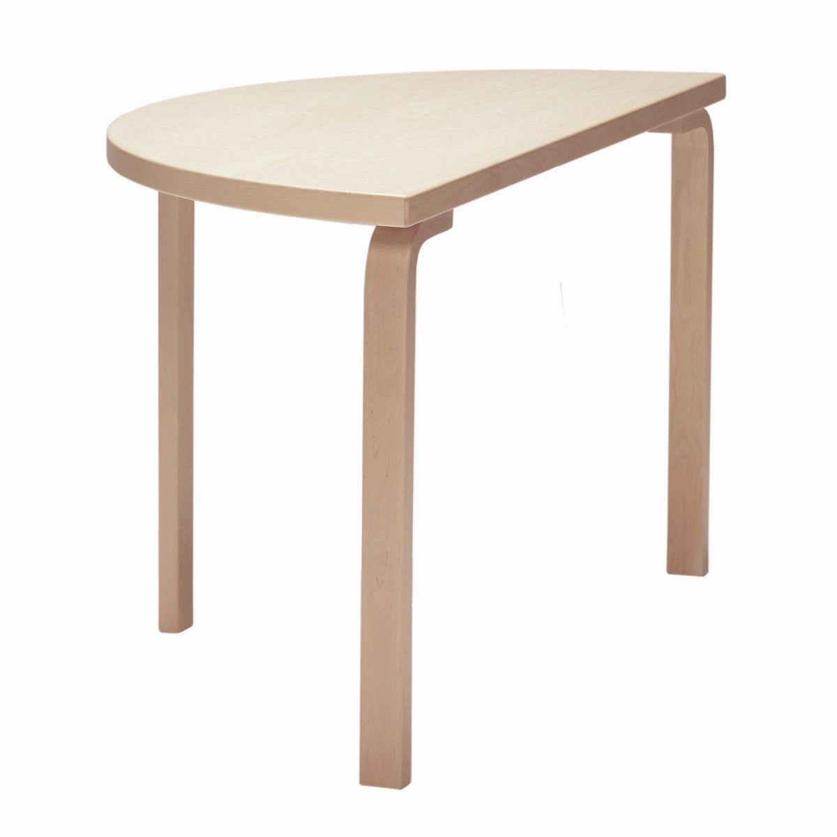 The ultimate mix and match piece of furniture, this semicircular table is beautifully constructed from natural birch wood and assembled with skilled technique and precision. Push this table next to a wall and create an unobtrusive side table or combine it with table 80A, 80B or 81B and build an impressive long table. The legs are constructed from solid birch and the tabletop is made from birch featuring a honeycomb core. Designed by Alvar Aalto in 1935, this table has three bent wood legs in Aalto's famous "L" shape. Made in Finland by Artek. Simple assembly required.