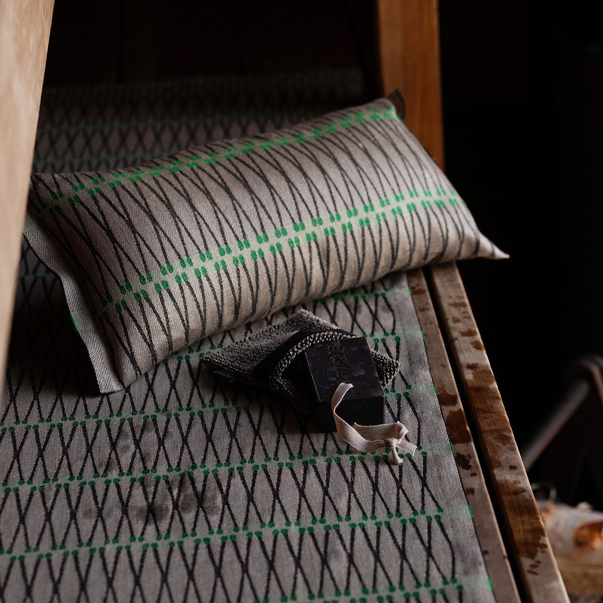 Lapuan Kankurit Tulitikku Taupe / Black / Green Sauna Pillow