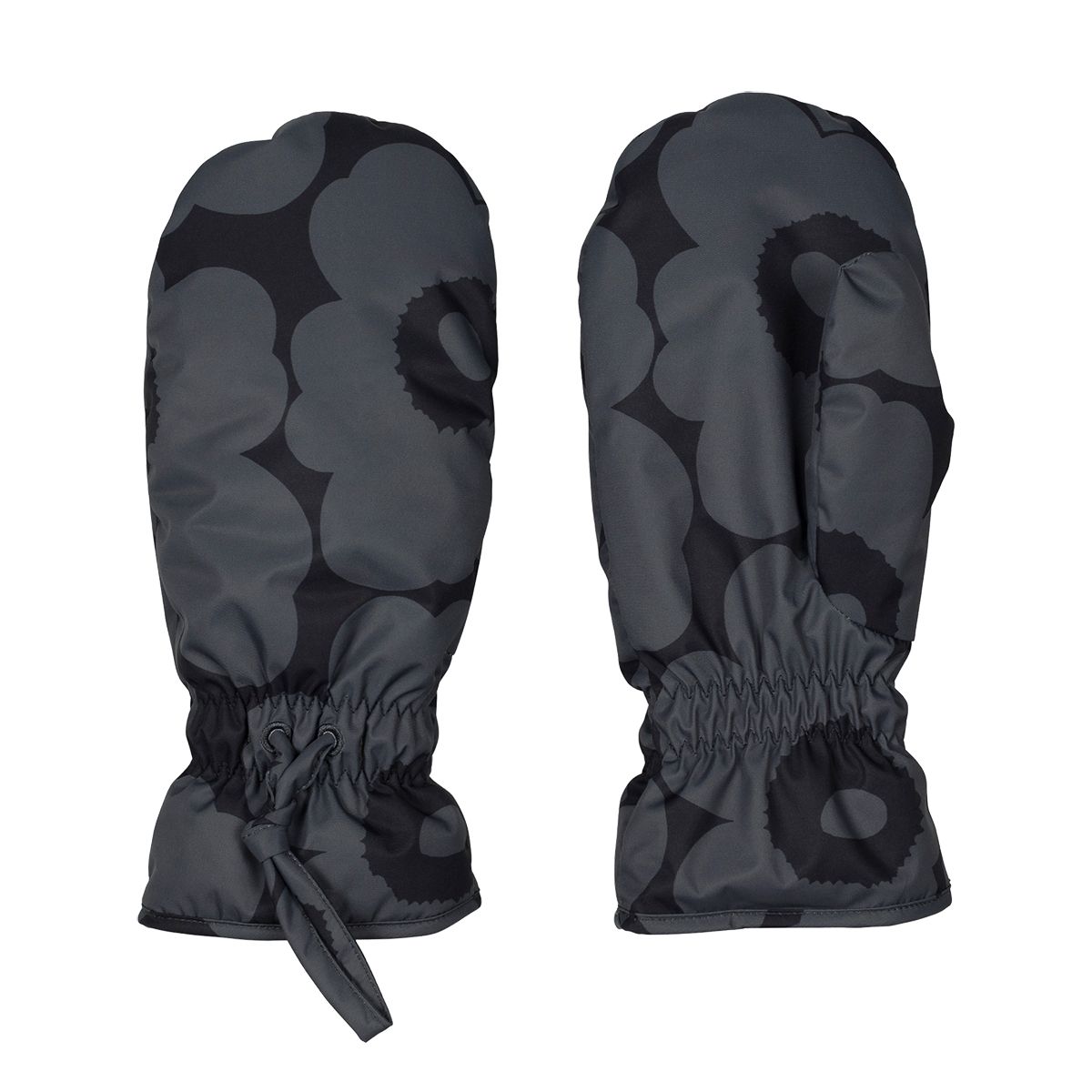 Maija Isola's beloved Unikko (Poppy) print blooms just as boldly in the cold. These adorable mittens are decorated with the popular poppies in black and grey to suit any ensemble this season. Made from durable and sleek polyester that can be easily wiped clean, they have a soft, insulated lining to keep your hands cozy on chilly days. The Marimekko Magneetti Unikko Mittens have elastic gathers and decorative drawstrings at the wrists for a snug fit and to keep the cold out.