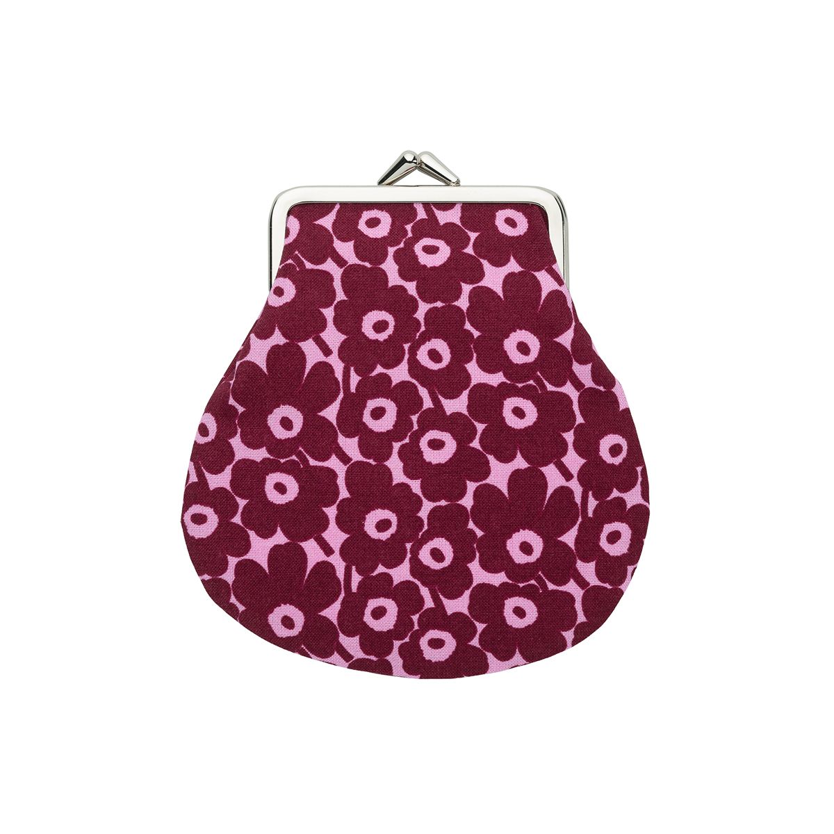 Marimekko makes sure even your coins and cash have a pretty presentation. Scaled down in size and lovingly named Pikkuinen (The Little One), Maija Isola's popular poppies decorate this small coin purse in beautiful burgundy and pretty pink. With a solid pink interior lining, the mini and hand-held size can fit coins, cards, cash, toiletries and other small treasures. The Marimekko Pikkuinen Unikko Burgundy / Pink Coin Purse is made in Finland from 100% cotton fabric, and it conveniently snaps shut with a metallic clasp to keep your items safe.