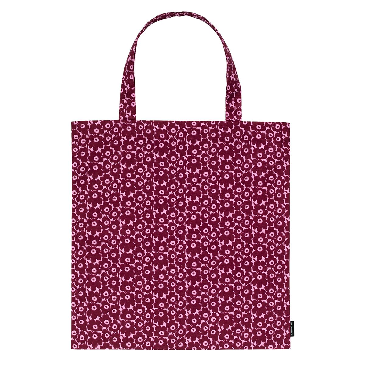 Scaled down in size and lovingly named Pikkuinen (The Little One), Maija Isola's popular poppies decorate this Marimekko. In beautiful burgundy and pretty pink, this tote bag will be just as stylish as it is functional. Made from 100% cotton, the Marimekko Pikkuinen Unikko Burgundy / Pink Tote Bag is handy, lightweight, and of course stylish, while the simple construction makes it the perfect travel companion for a day out, running errands, or taking a trip to the market.