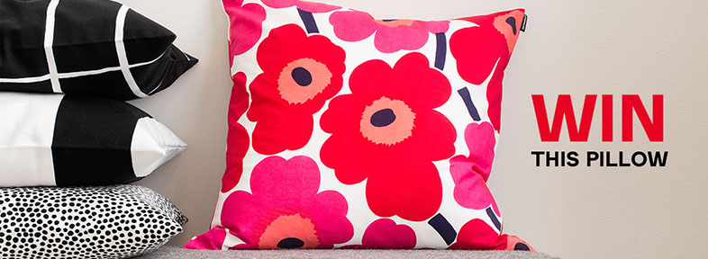 Enter to win a Marimekko Unikko Throw Pillow, a $50 value. The pillow is made from Maija Isola's classic red, pink and white color palette which was designed in 1964.