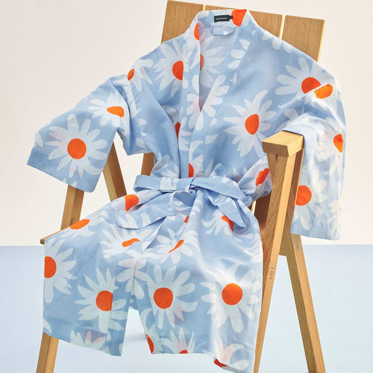 Marimekko Rakastaa Ei Rakasta Light Blue / White / Orange Bathrobe