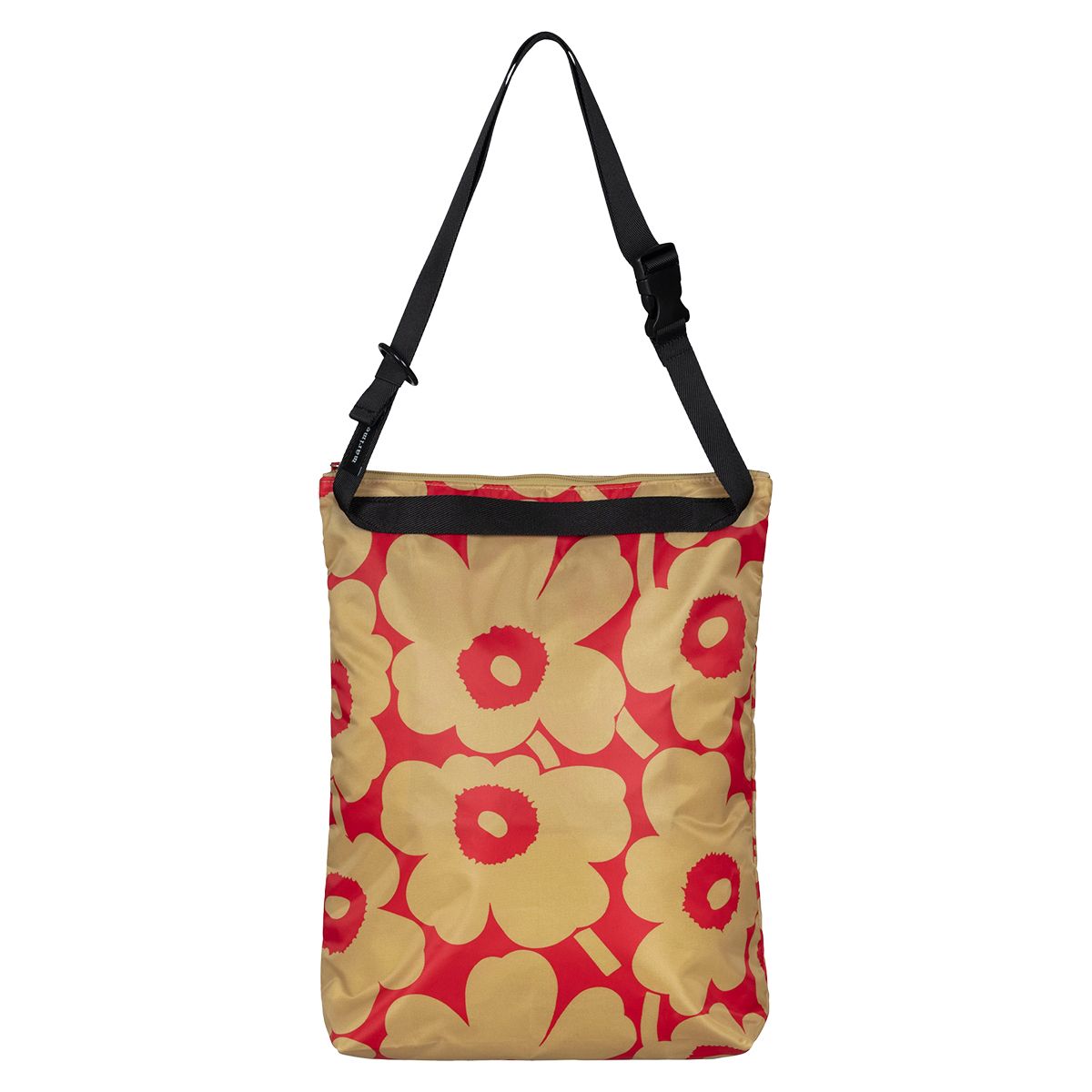 Popular poppies and eye-catching colors make the perfect accessory. In a red and light brown colorway, Maija Isola's Unikko (Poppy) pattern decorates the Marimekko Medium Neat Shoulder Bag for fashionable function. Adding a pop of color to any ensemble during a day out, the bag is made of sleek and lightweight polyester with a durable, adjustable shoulder strap. The bag has a zipper closure and Marimekko label on the exterior, while the inside includes a slip-in pocket where the whole bag can be folded away for easy storage. The medium size has a deep and roomy interior that will be ideal for smaller electronics, books, everyday essentials and more.