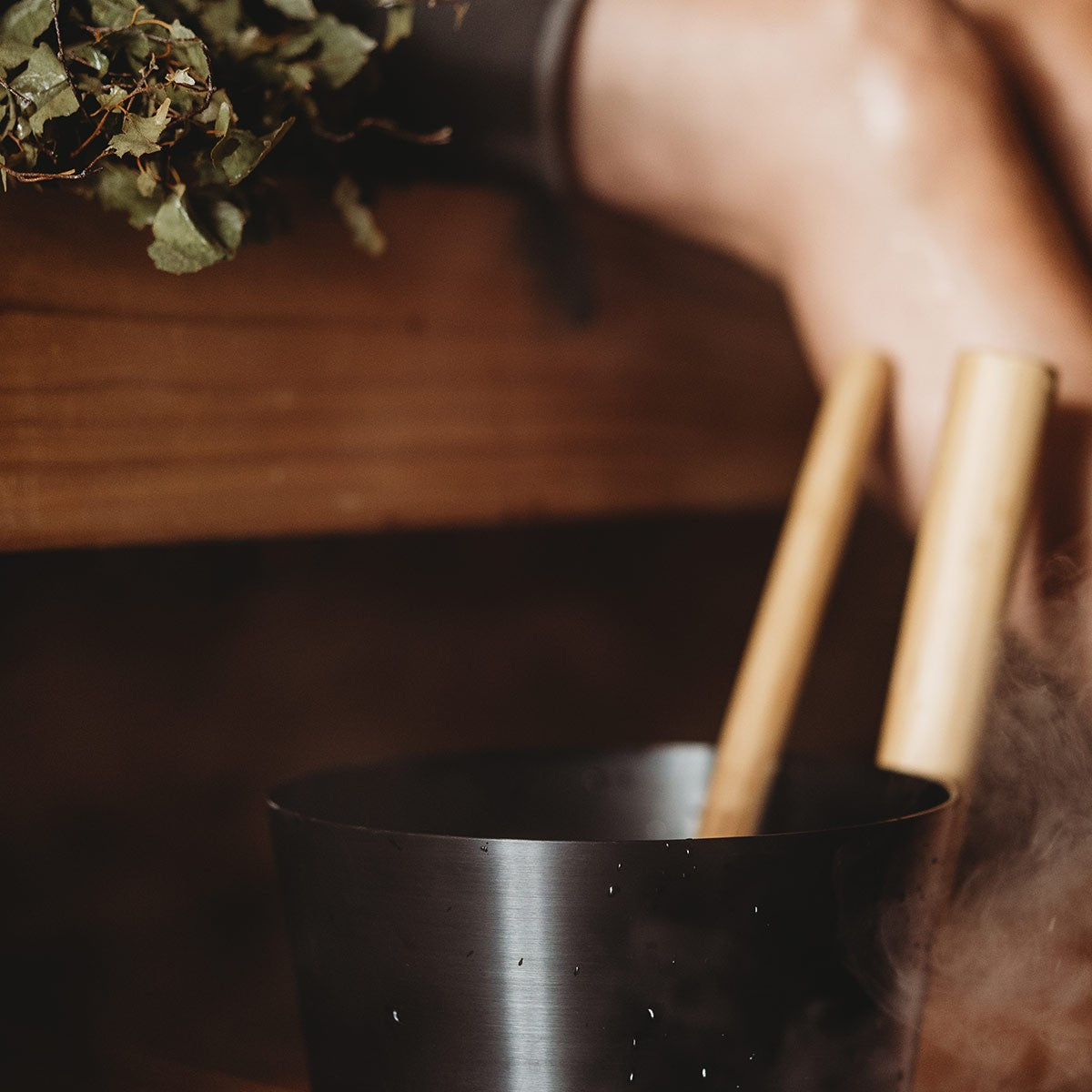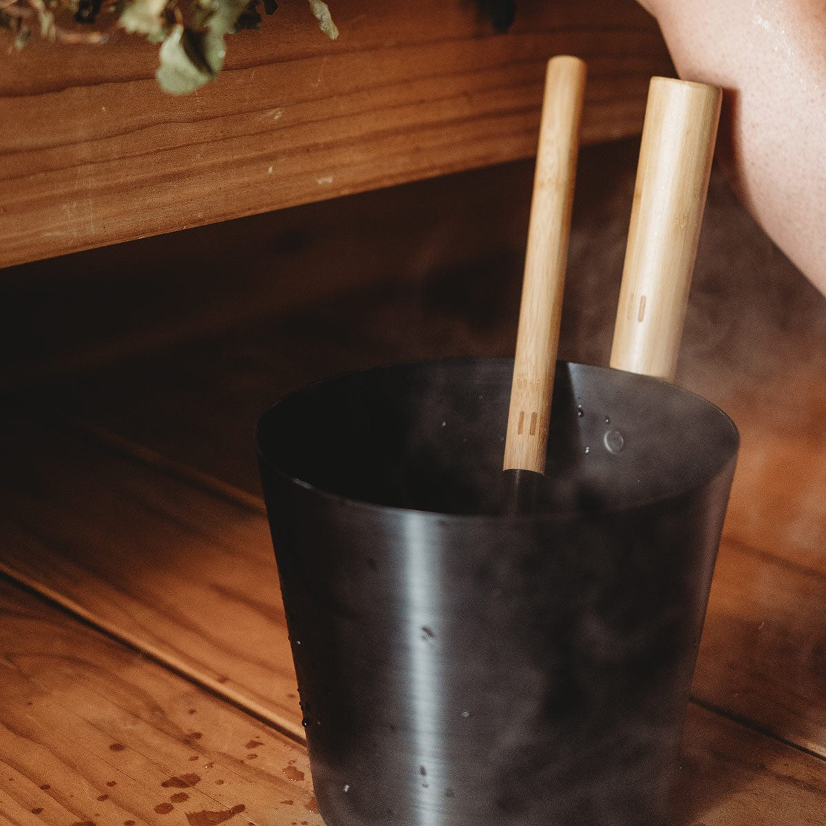 Rento Aluminum / Bamboo Black Sauna Bucket